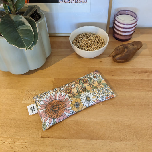 Very happy with this lovely heat pack, my neck and shoulders thank you. Love the fabric, shape, weight, lupins and quality.