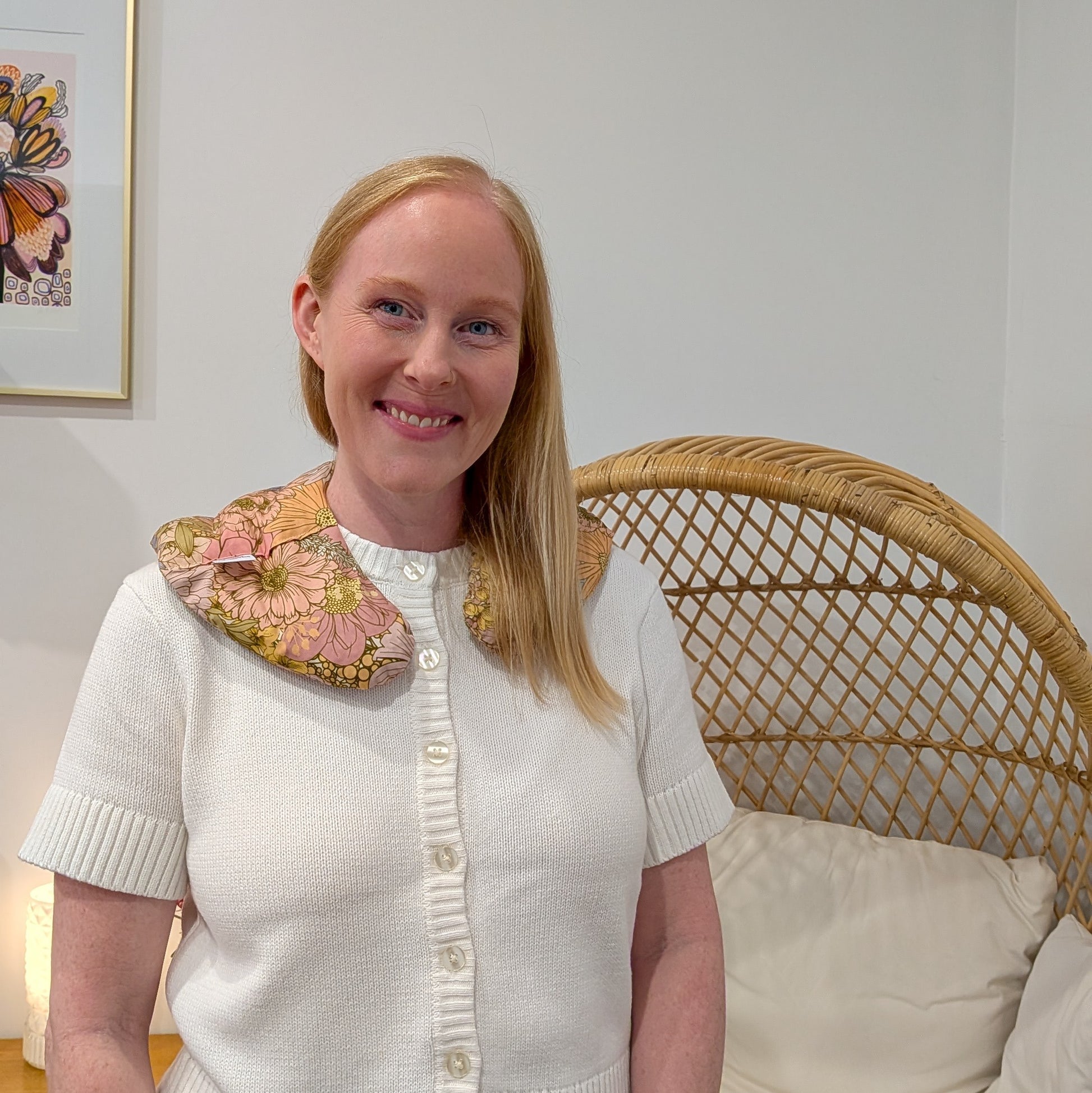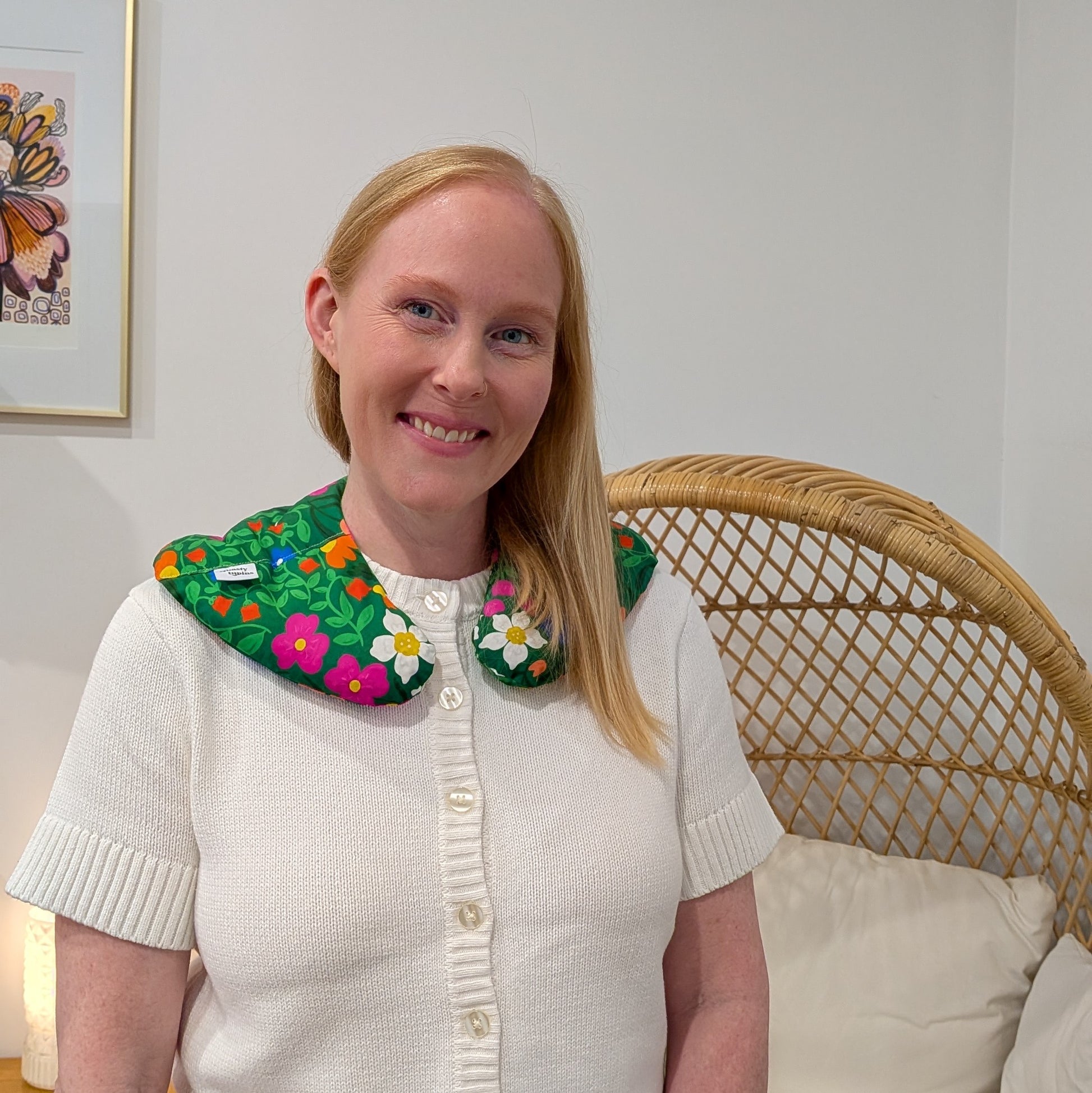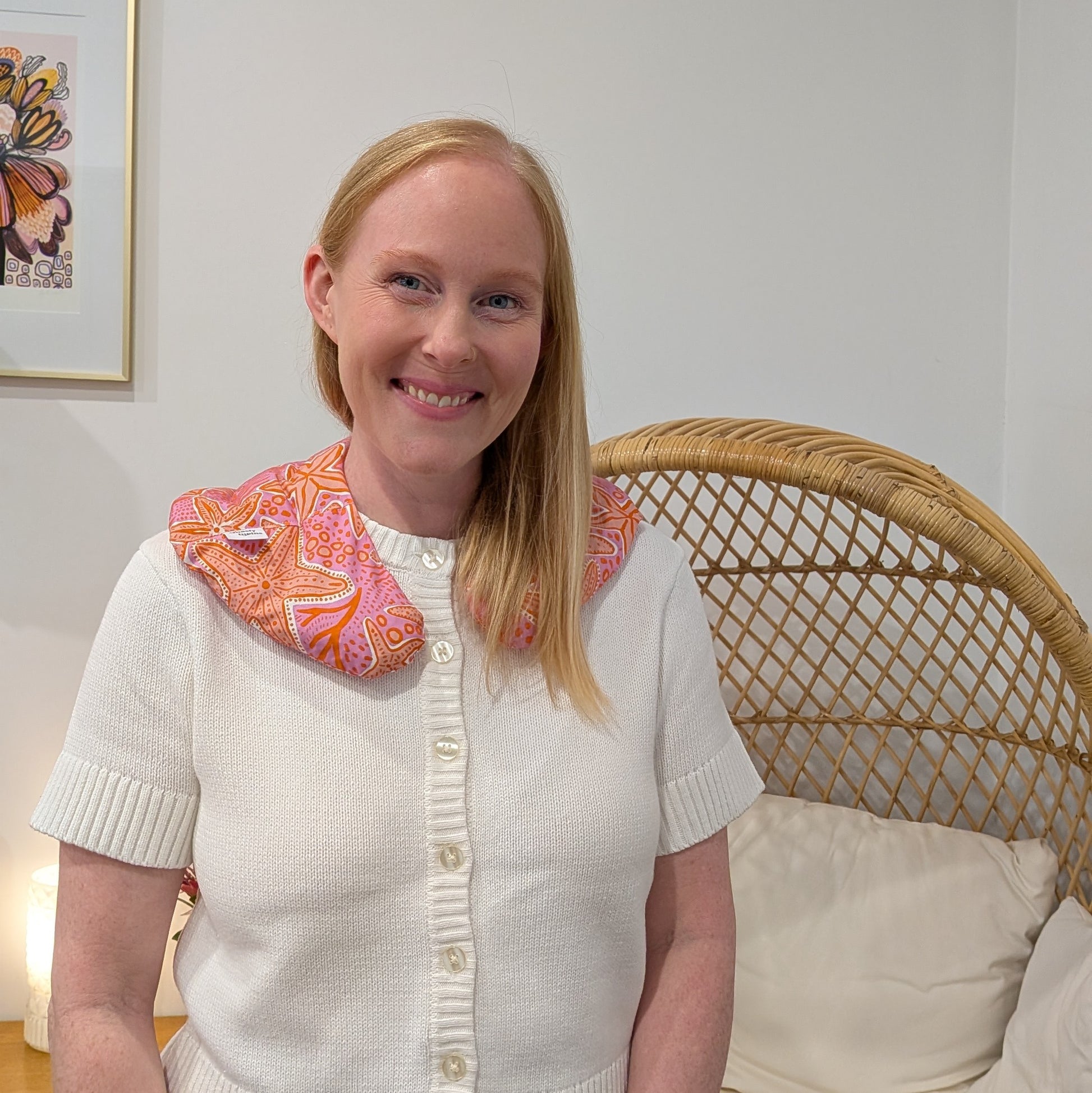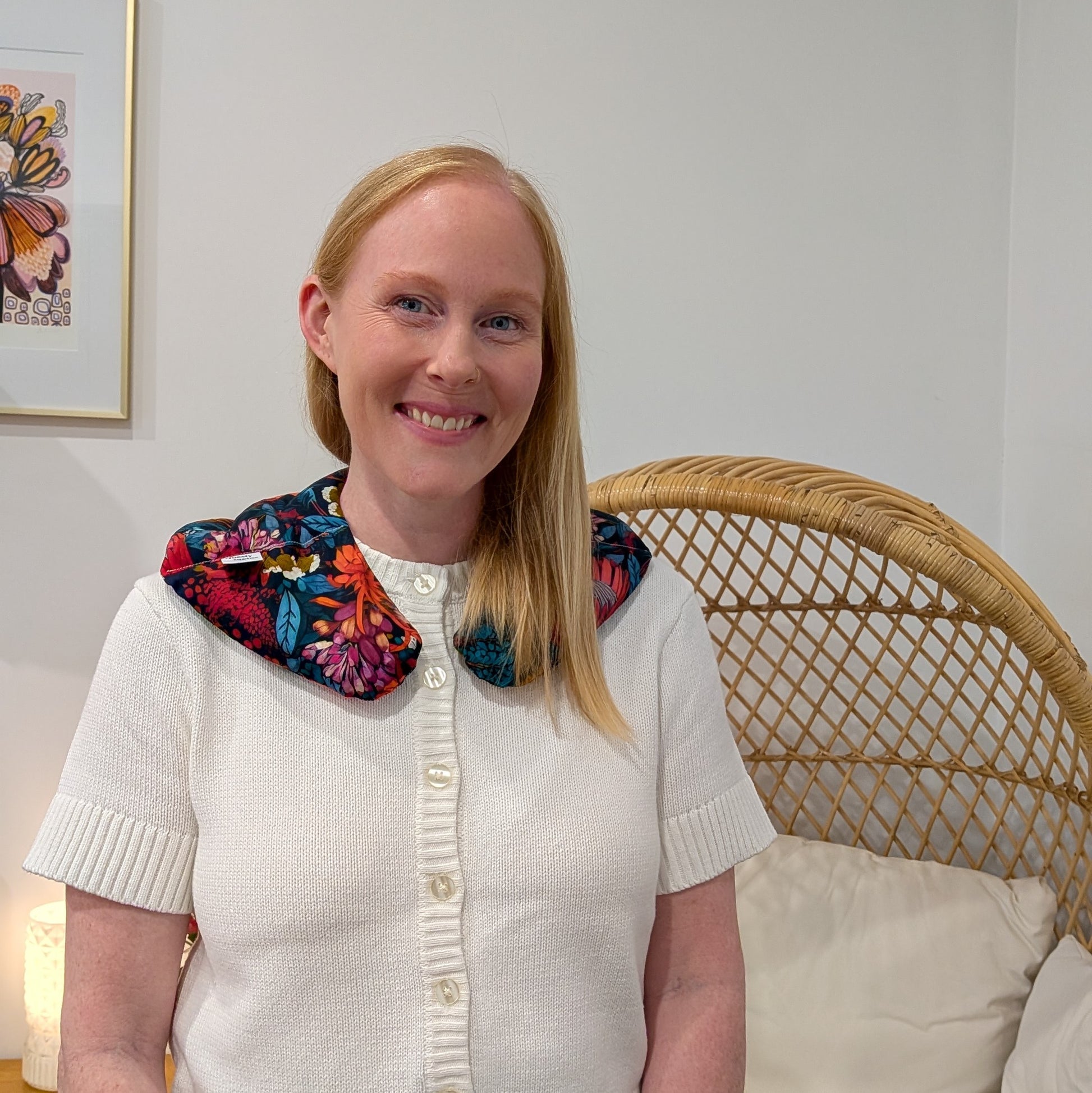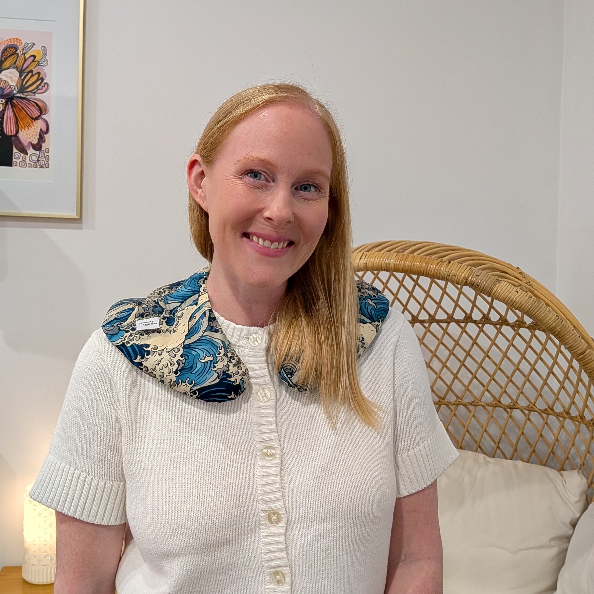 I really love this. Toasty lupin fits across the neck and shoulders perfectly. It stays in place when I move around and it delivers lovely toasty warm comfort to my sore shoulders.